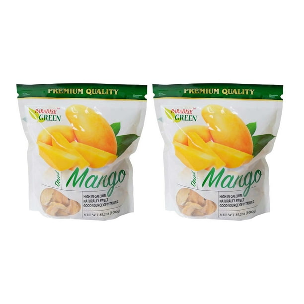 Dried Mango allows you to enjoy the taste of mango regardless of the season. Theyre special because our unique drying process allows them to taste like fresh mangoes and still be high in calcium and a good source of Vitamin C. Flavor NameDried Mango Size218 Pound Pack of 2 Paradise Green Mangoes are premium quality because theyre Golden Mangoes only grow in the tropical rain forests of Thailand.