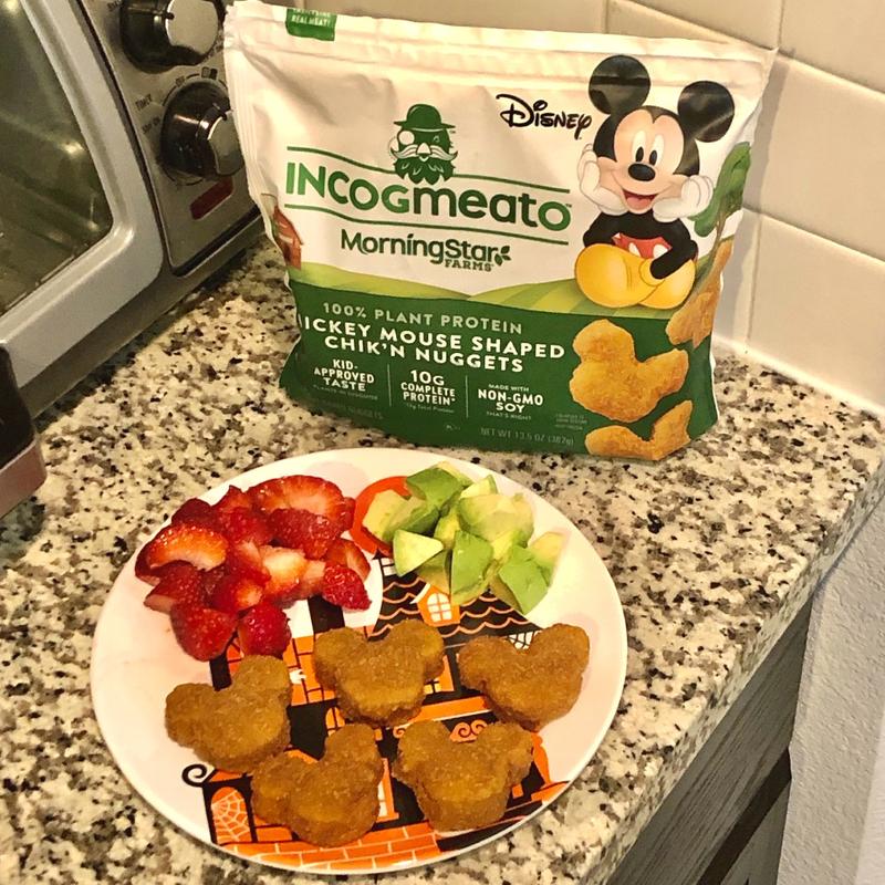 MorningStar Farms Incogmeato Plant-Based Chikn Nuggets Disney Mickey Mouse Shaped 135 Oz. Additionally this option has less fat and less sodium than a traditional nugget option. Regular chicken nuggets contain 13g total fat per serving 86g Morningstar Farms Mickey Mouse Incogmeato Chikn Nuggets contain 7g.