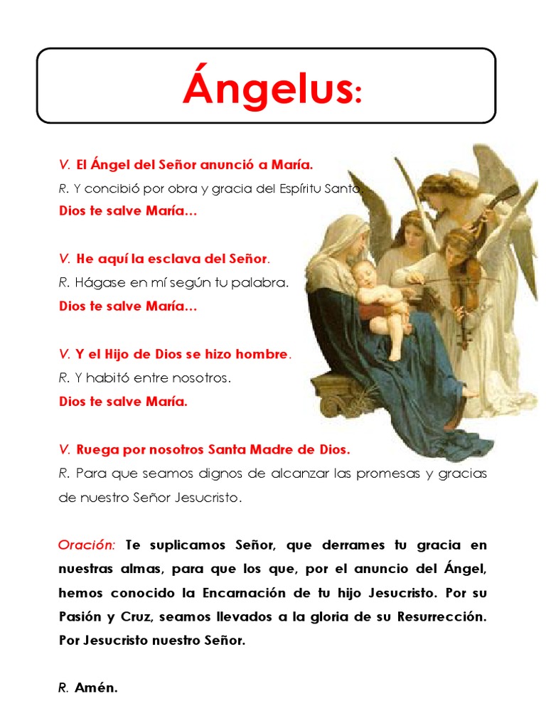 Hágase en mi según tu palabra. La Oración de cada día. La costumbre de recitarla tres veces al día se atribuye al rey francés Luis XI quien en 1472 así lo dispuso.
