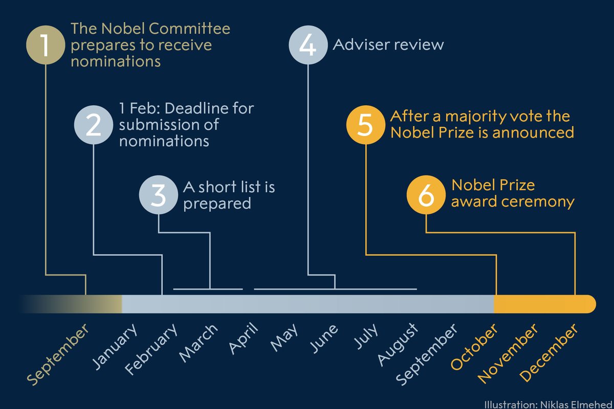 The Nobel Prize On Twitter How Is The Nobelpeaceprize Decided Each Nobelprize Has A Different Selection Process For Peace Nominations Are Received Up Until 1 February From Which The Norwegian Nobel Committee