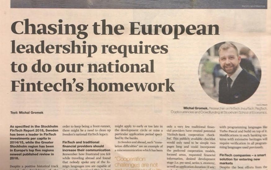 Michal Gromek On Twitter In Today S Edition Of One Of The Largest Newspapers In The Nordics Dagensindustri Reviewing Ideas On Potential Needs Of National Fintech Ecosystem To Grow Even Faster It Is